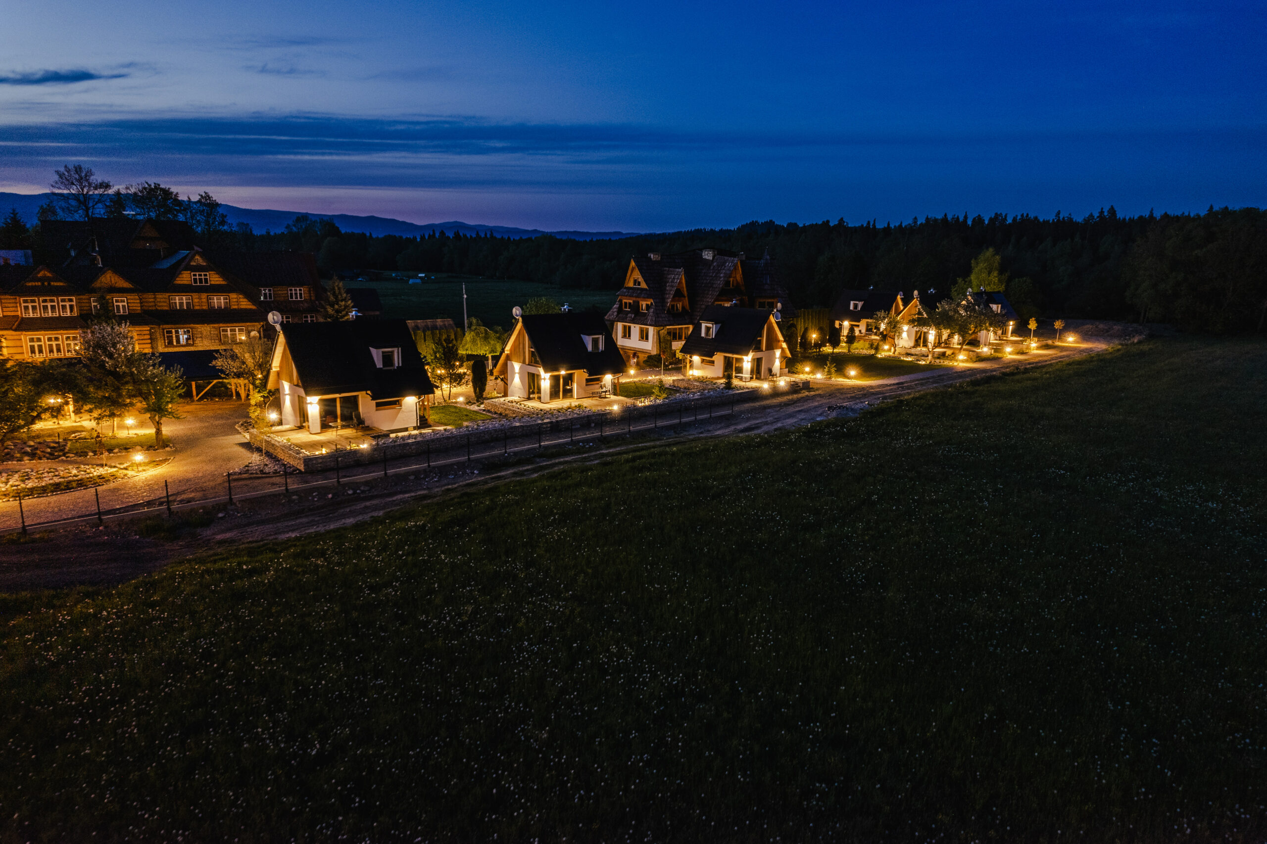 Każdy z domków zapewnia komfort, prywatność i pełne wyposażenie, idealne na wypoczynek o każdej porze roku. Osada położona jest w bezpośrednim sąsiedztwie natury, w spokojnej części Białki Tatrzańskiej, co sprzyja relaksowi i regeneracji. To doskonałe miejsce zarówno na rodzinny pobyt, jak i wyjazd w góry dla osób ceniących ciszę, przestrzeń oraz bliskość atrakcji regionu.